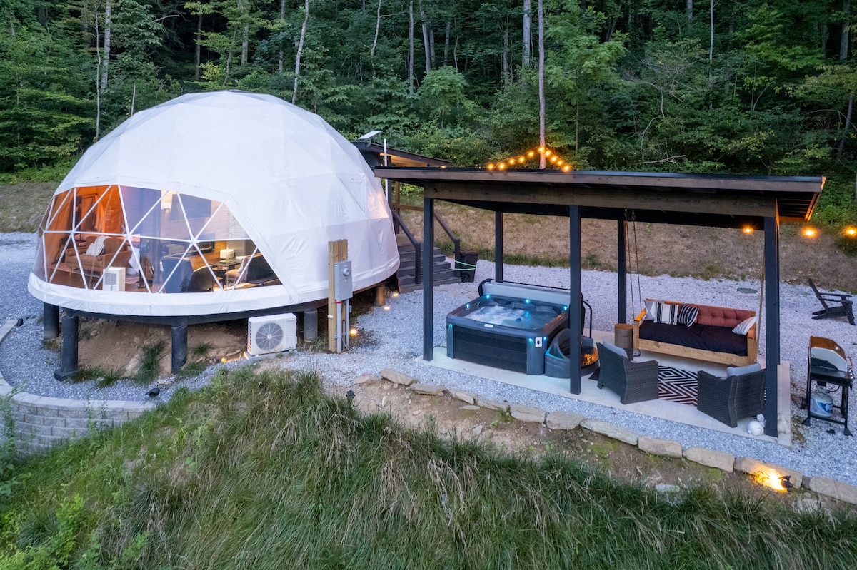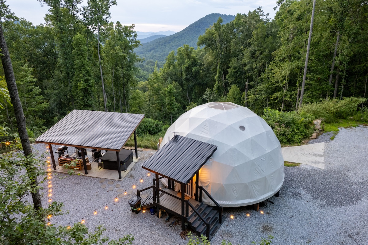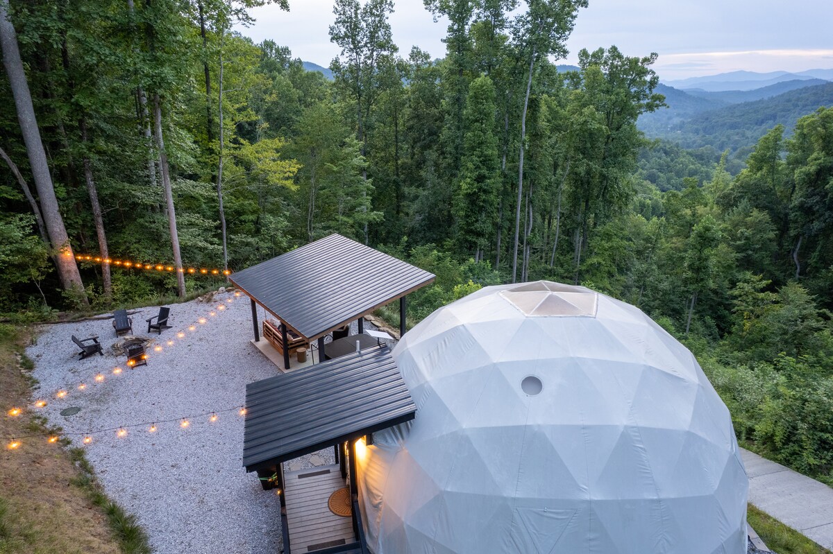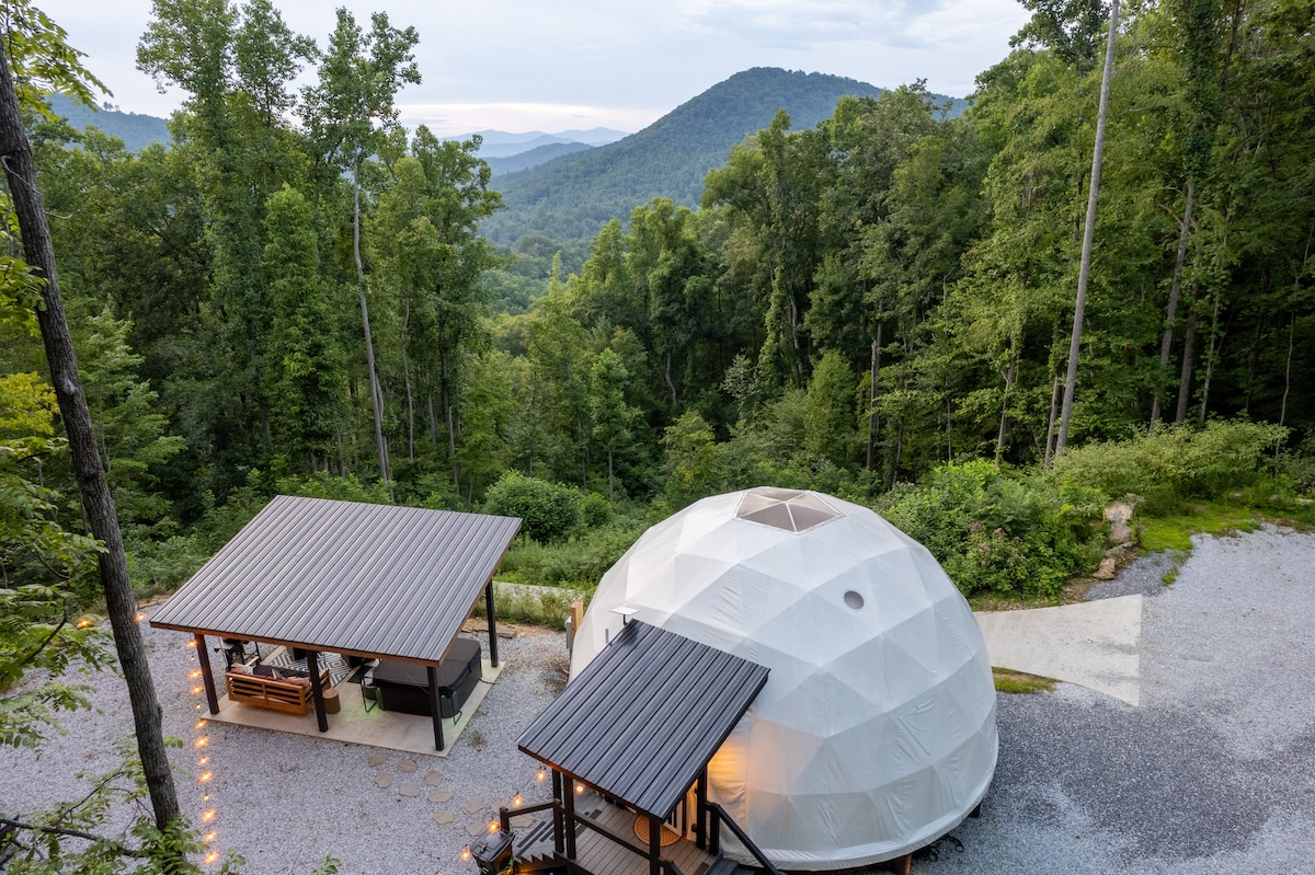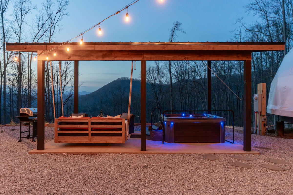 This property stands out above the rest offering its guest a unique and rare opportunity to reconnect with nature without losing the comforts of home. Amidst the secluded private glamping dome, we offer breathtaking mountain views and serenity, without losing exceptional creature comforts. Guests can enjoy amenities such as: dip in the hot tub, lounging on the deluxe patio bed swing, or just enjoying coffee with a view from the coziness of the luxury master king bed.