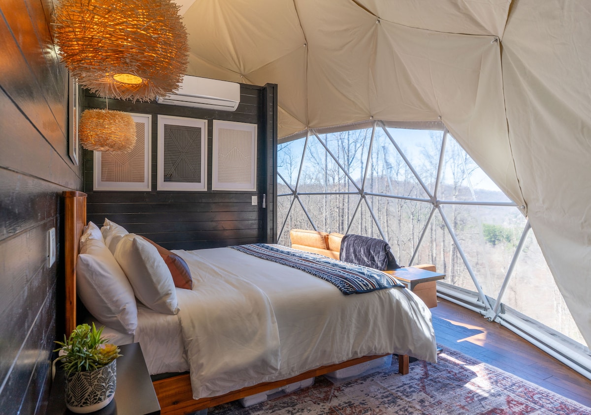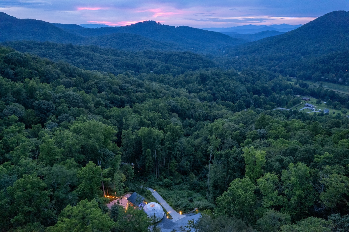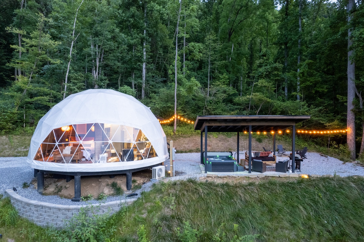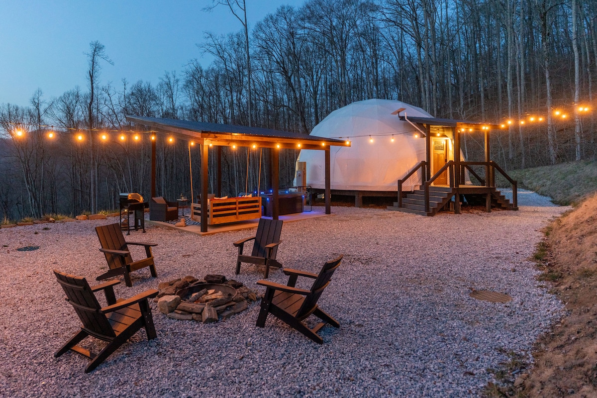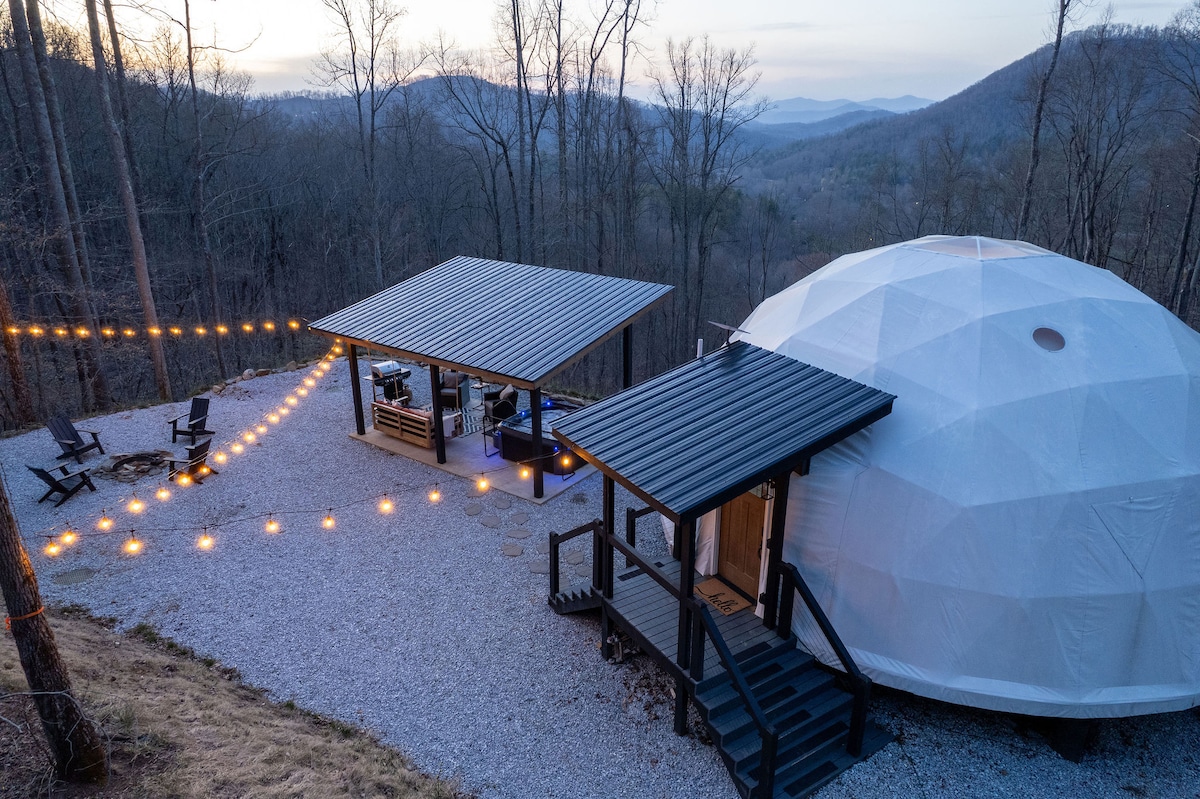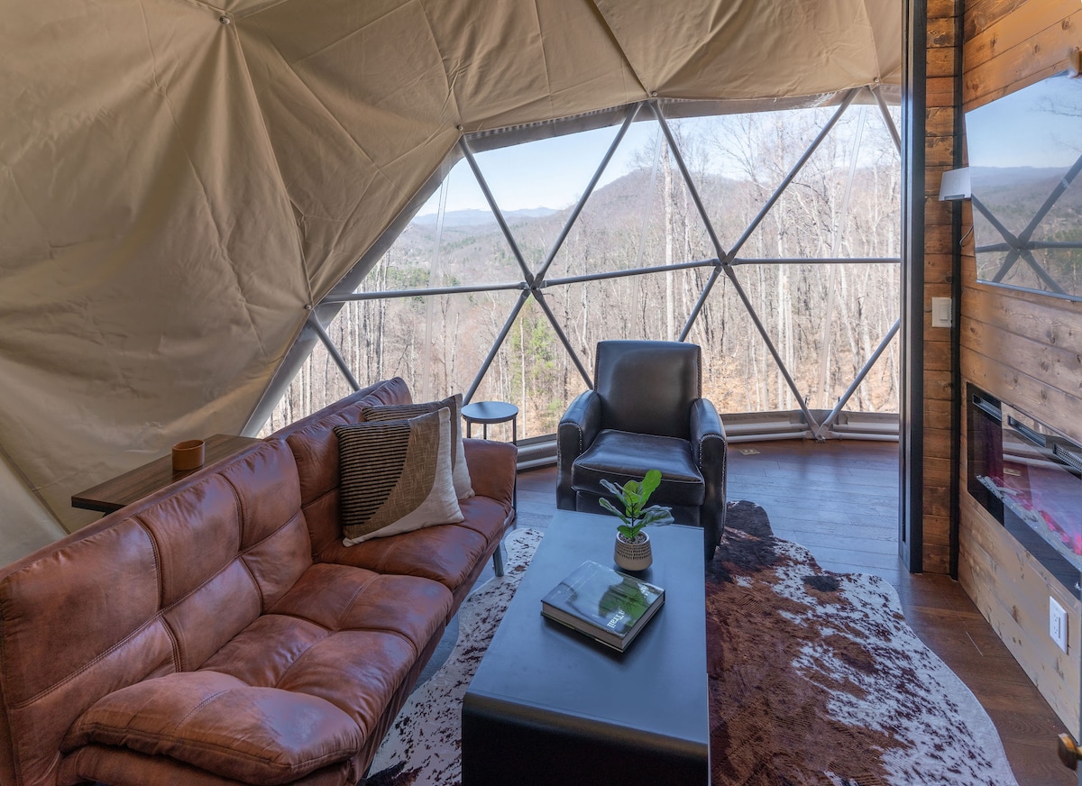 This property stands out above the rest offering its guest a unique and rare opportunity to reconnect with nature without losing the comforts of home. Amidst the secluded private glamping dome, we offer breathtaking mountain views and serenity, without losing exceptional creature comforts. Guests can enjoy amenities such as: dip in the hot tub, lounging on the deluxe patio bed swing, or just enjoying coffee with a view from the coziness of the luxury master king bed.