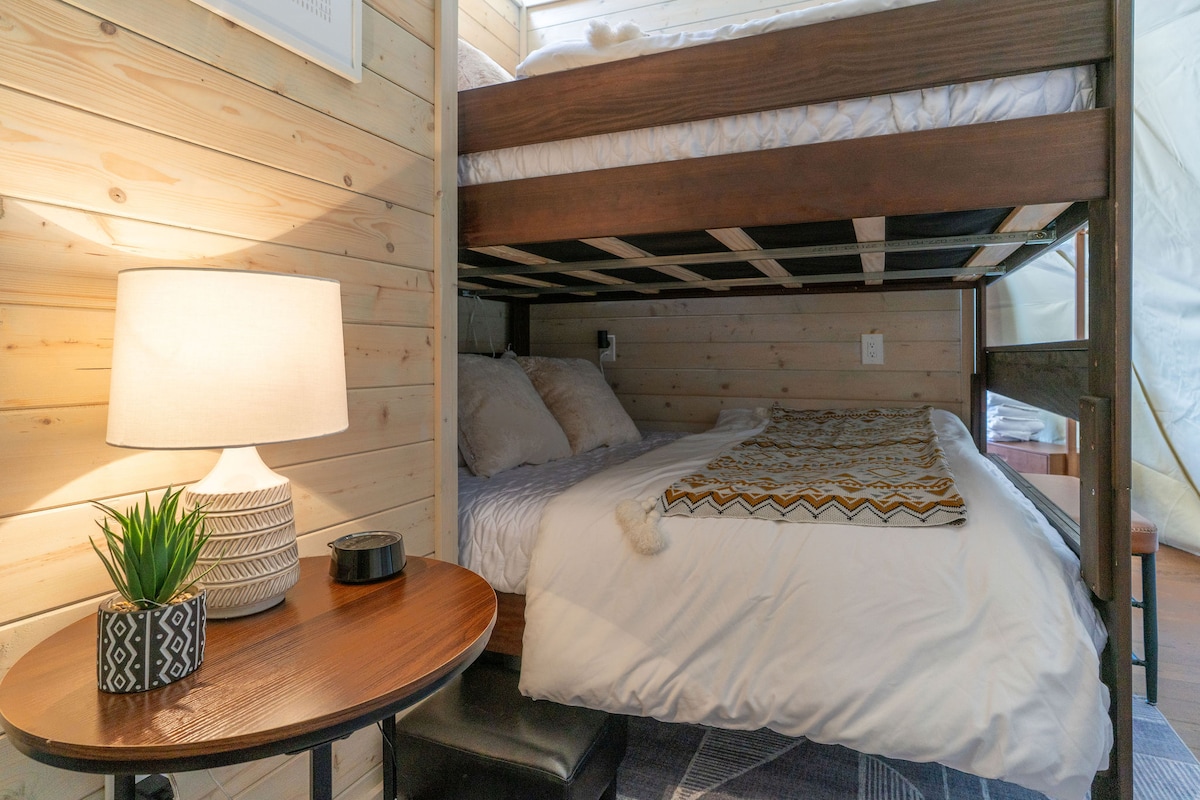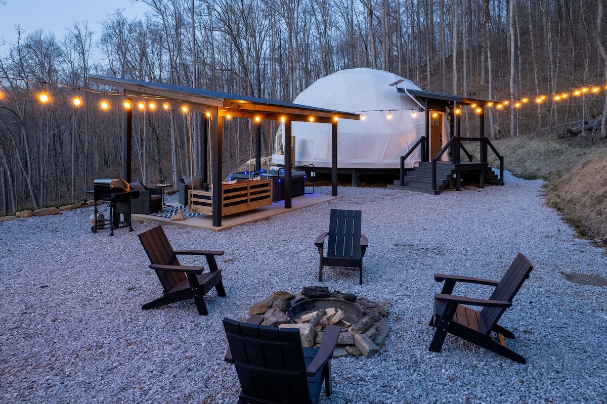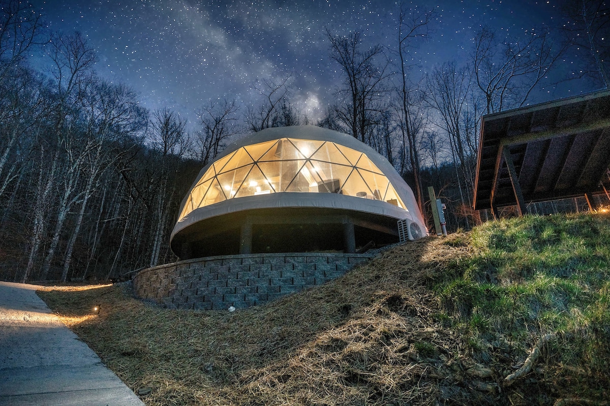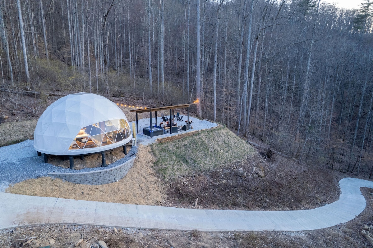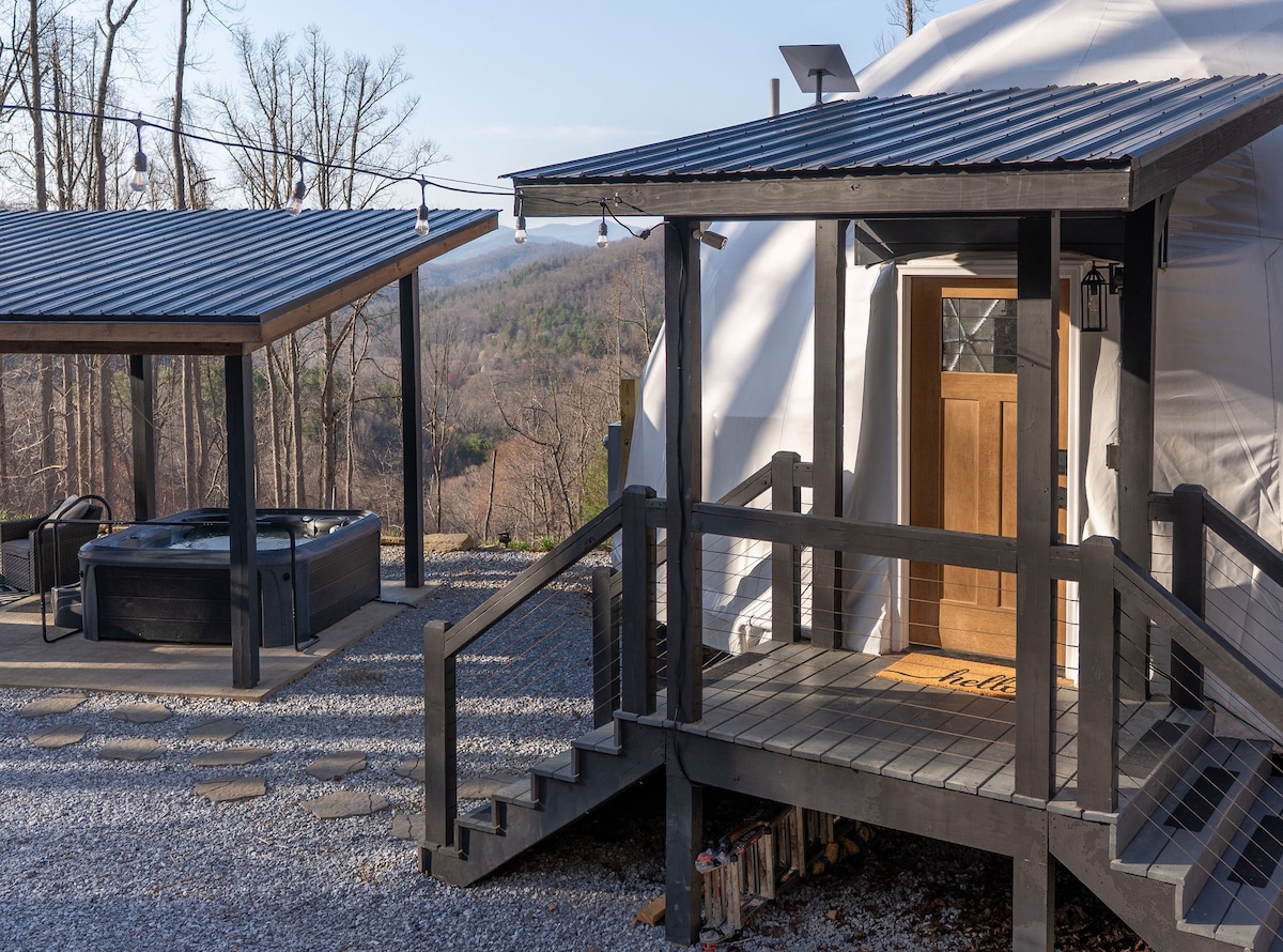 This property stands out above the rest offering its guest a unique and rare opportunity to reconnect with nature without losing the comforts of home. Amidst the secluded private glamping dome, we offer breathtaking mountain views and serenity, without losing exceptional creature comforts. Guests can enjoy amenities such as: dip in the hot tub, lounging on the deluxe patio bed swing, or just enjoying coffee with a view from the coziness of the luxury master king bed.