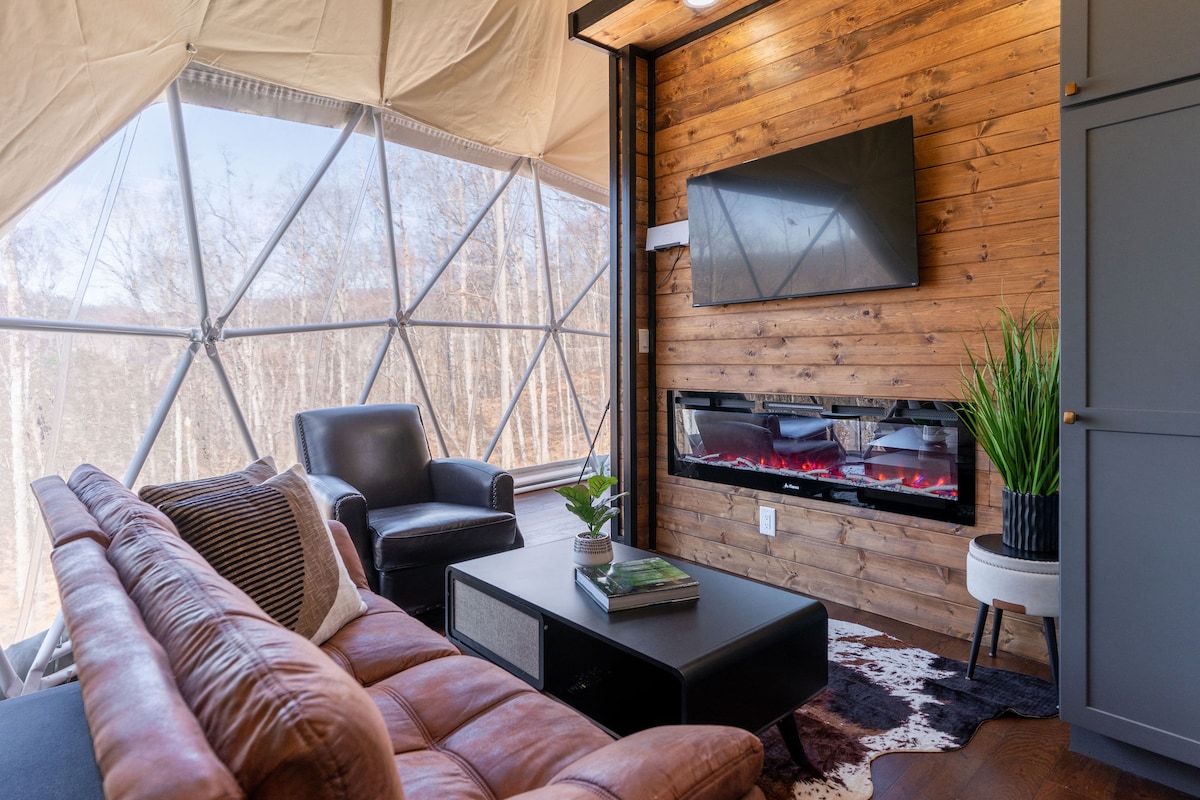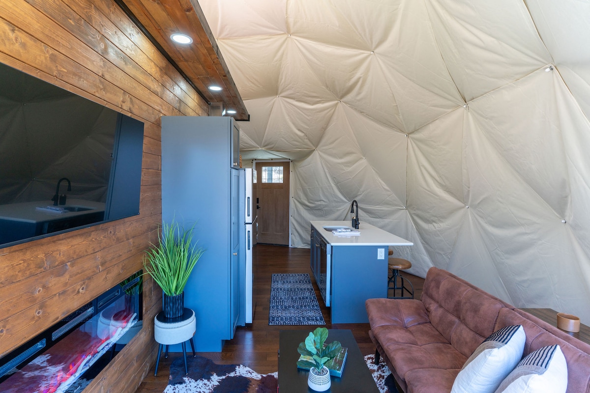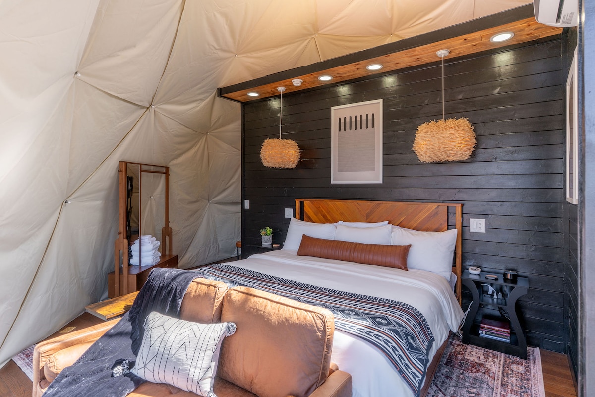 The dome is a unique structure that does come with certain challenges. Glamping domes are more sensitive to external conditions. The dome is insulated and conditioned but with heat of summer and cold of winter make certain temperature ranges more difficult to achieve and maintain. There is a single minisplit AC/Heater on the wall above the master bed. So be aware that other areas of the dome may be cooler or warmer than others.